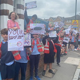 As part of their topic on Climate Change, the children persuaded their teachers to mount a campaign to raise awareness of the problem and launched it to coincide with Clean Air Day 2021. The majority of drivers were very supportive of the children's efforts and did turn their engines off.